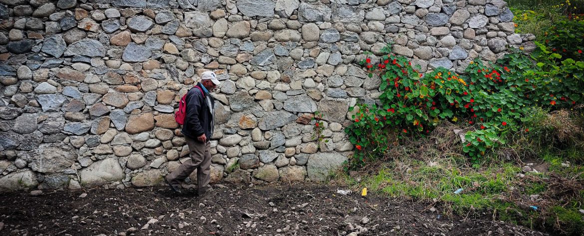 Ya saliendo del terreno avistamos unos muros muy antiguos e interrogamos al maestro Ramón por la diferencia entre esos muros de antes y los actuales: “La diferencia es que éste (hecho por él con su hija) lleva cemento y es piedra acomodadada, en cambio aquel (el antiguo), no lleva cemento y lo hacían a lo bruto. Hay partes que se caen porque no está pegado, pero hay partes que se conservan exactamente, y se conserva calidad”.