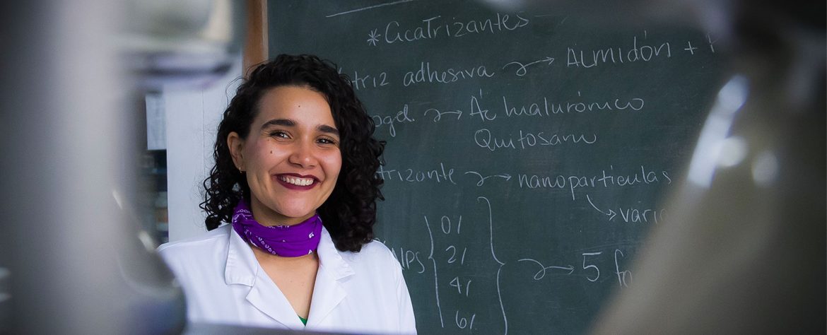 Esta joven química y docente hizo su tesis sobre el desarrollo de un pegamento a base de polímeros naturales extraídos de la yuca, procesados con las mismas técnicas con las que se obtiene almidón de maíz. Además anda acompañando otro proyecto ambicioso: hidrogel cicatrizante capaz de curar escaras y quemaduras