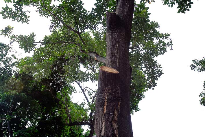La debilidad es un ente con herramientas adecuadas para dicho mantenimiento. Camión adecuado a las alturas o portar andamios adecuados. Existió una dirección de Parques y jardines en GDC, que regularmente se ocupaba de estas podas de mantenimiento. Es muy lamentable perder vegetación por no atender este cuido, si la raíz levantó la acera y partió un tubo de agua, el árbol perderá en poco tiempo su sustento.