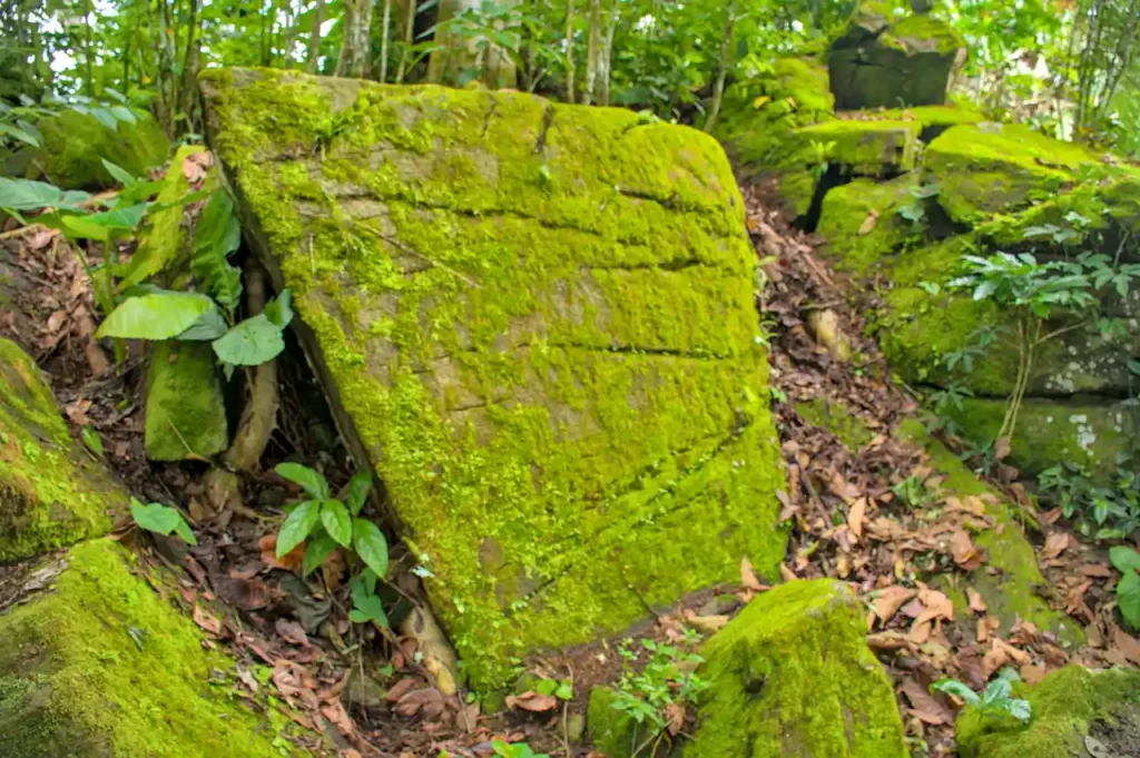 También nos cuenta que cerca del lugar se encuentran tres monolitos o menhires que tienen 2,98, 2,94 y 2,92 metros de altura y están reunidos formando una especie de piedra dividida. Estos peñascos colosales representan un pacto que hicieron tres pueblos que habitaban el lugar con el fin de evitar conflictos en sus actividades de caza y recolección: “uno venía de allá (Cayetano señala con el dedo en varias direcciones), otra por acá y otra por allá, y pasaban para acá para cazar los animales; esto estaba lleno de to’ tipo de animales, entonces pusieron esas tres piedras: que no se pasara nadie, porque si alguno se pasaba, tenía que pagar con un sacrificio. Arriba, pusieron como una batea arriba… de aquí no me pasen”.