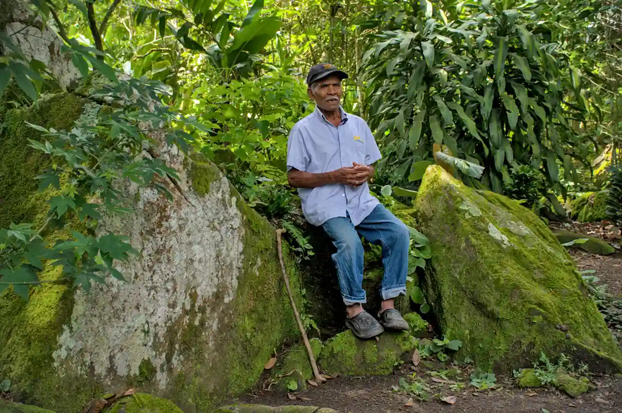 Cayetano Rojas nos recibe con una sonrisa y nos hace pasar hasta el porche de su casa. Luego nos invita a acercarnos al petroglifo que queda a unos 5 o 6 metros de la puerta de su vivienda, justo donde estuvimos preparándonos para la conversa. Con sus ochenta años, mantiene esa chispa que tienen los memoriosos y, sin demoras, se sienta al lado del grabado y comienza a narrar lo que sabe con la soltura de quien lo ha hecho muchas veces.