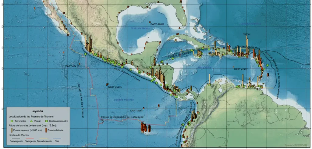 Tsunamis Históricos (desde 1610 hasta el año 2023) Caribe, Centroamérica, México y Regiones Adyacentes. Fuente: NOAA
