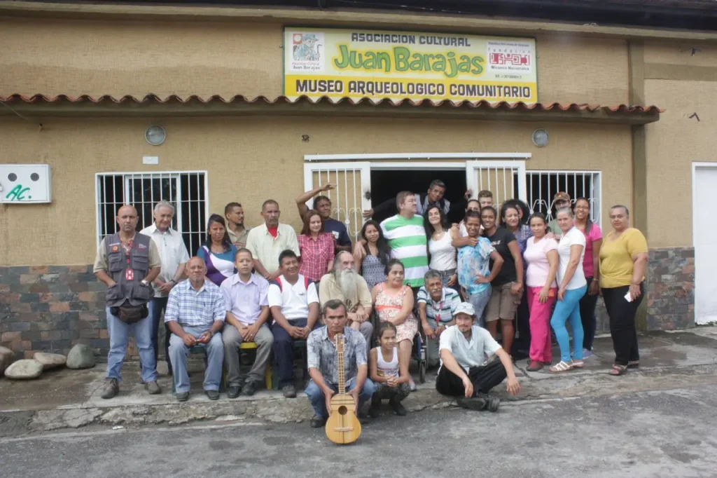 “Aquí organizamos uno de los equipos que censamos para la impresión del libro del municipio Antonio José de Sucre de Barinas. Cuando nosotros avanzamos a meter el GPS a piedras, montículos, calzadas, vimos que había una inmensa riqueza arqueológica regada y que se las estaban llevando para otros estados del país, incluso para fuera del país, para gente que tenía colecciones y las compraba. Cuando un campesino abría un jagüey para sacar agua, cuando un campesino abría un hueco para sembrar un horcón, cuando los niños o los campesinos iban a bañarse en el río, en los barrancos de los ríos, aparecían los cementerios arqueológicos. Y toda esa arqueología caía al río. En tiempos de verano, cuando bajaban las aguas, nosotros íbamos, visitábamos toda esa zona arqueológica y empezamos a recoger piezas. Y después dijimos, bueno, ¿y ahora qué vamos a hacer con todo este poco de piezas? Diseñamos el museo. Empezamos a construir vitrinas, a organizar los espacios y a poner las cosas bonitas. Y vino Garzón de el IVIC con un arqueólogo llamado Juan Carlos. Nos asesoraron en cómo medir las piezas, cómo limpiarlas, cómo mantenerlas, cómo ordenarlas y cómo resguardar este material arqueológico que data más o menos de 1200 años de la familia arawaco que habitó los Altos Llanos de Barinas. Y ahí nació el Museo Arqueológico Juan Barajas, museo comunitario que creció al calor de su gente”.
