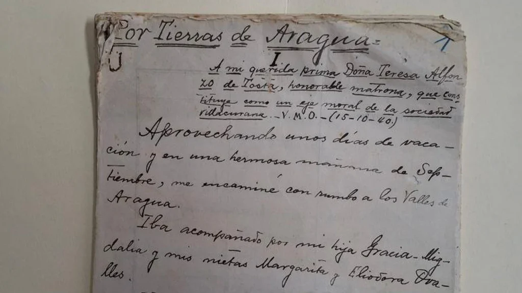En una epístola fechada el 15 de octubre de 1940, que titula Tierras de Aragua y que dirige a su prima Doña Teresa Alfonzo de Tosta, escribe Víctor Manuel: