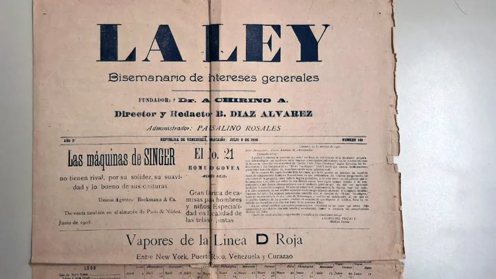 En la caja 2 encontramos parte del inventario que hizo de los periódicos que circularon en distintos estados del país. La imprenta llega en 1808 y desde entonces empiezan a proliferar publicaciones de todo tipo, religiosas e informativas mientras lo permitieron los generales Cipriano Castro y Guzmán Blanco; después llega la dictadura de Juan Vicente Gómez. Es cuando veladas críticas emanan de la novelística.