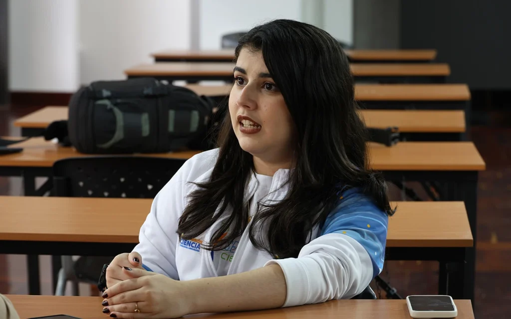 “Tengo un chiste con las otras chicas de mi delegación, porque ellas están estudiando en la ULA, viven en Mérida y tienen al lado el CIDATA; tienen el Observatorio, el planetario, incluso aquí en Caracas hay dos planetarios, además de la comunidad de la divulgación científica que es gigantesca, y en Puerto La Cruz y en todo oriente no hay eso. Lo más cercano es un centro didáctico que acaban de abrir, pero es más como un museo y a nivel de primaria. Cuando llegué a Caracas estaba feliz. Porque uno bajaba al desayuno y escuchábamos a algún profesor de física hablando de que la taza de café no tenía una proporción adecuada por equis cosa y por esto… es la forma de pensar, que es completamente diferente y un lenguaje completamente diferente también, eso es maravilloso y yo no lo había vivido nunca”.