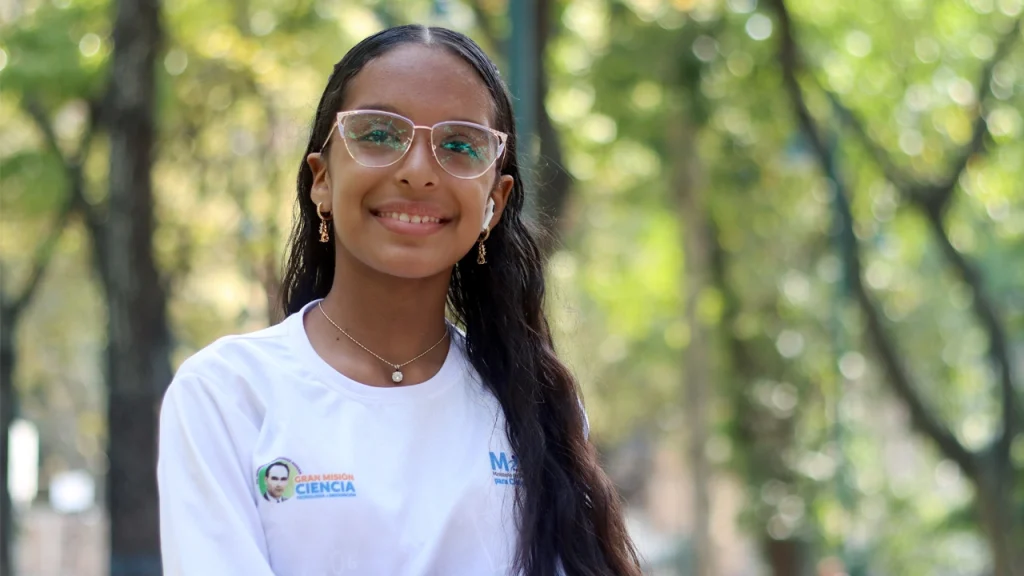 Milagros Yoglismar Pérez Zambrano tiene una estatura pequeña que nada dice de la dimensión de su intelecto, seguridad y autoconfianza. Es como las rosas que crecen en silencio, sin aspavientos, pero en su caso con una formidable energía dirigida a su aspiración de especializarse en robótica. No proyecta una sonrisa fácil: su rostro más bien irradia aplomo y convicción. Una niña consagrada a sus estudios de primer año en el liceo Edoardo Crema de El Paraíso. Su filosofía de vida, de hecho, es que “lo mejor es concentrarse en los estudios, ya que eso es lo que te va a ayudar y a dar frutos a futuro”.